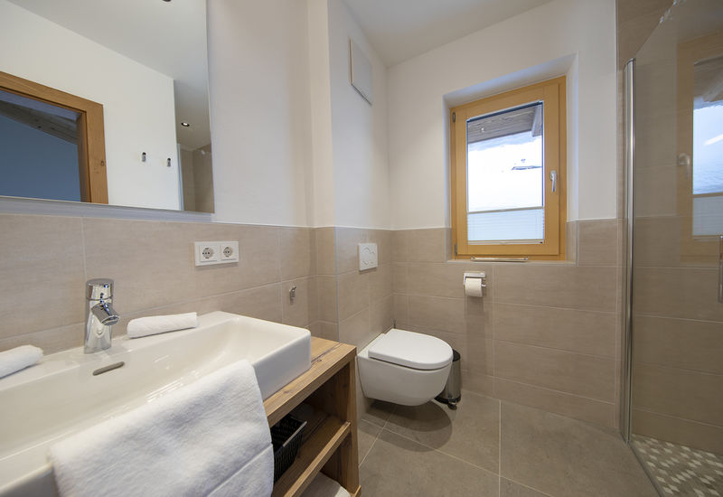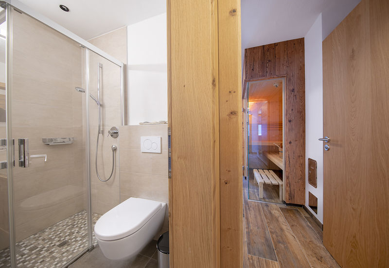 Neben dem Ruheraum mit Sauna und Relaxzone befindet sich ein zusätzliches Badezimmer (Badezimmer 1).