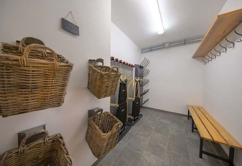 Im Erdgeschoss finden Sie den Skiraum mit Skischuhtrockner und Skihalter für jeweils 10 Paar.